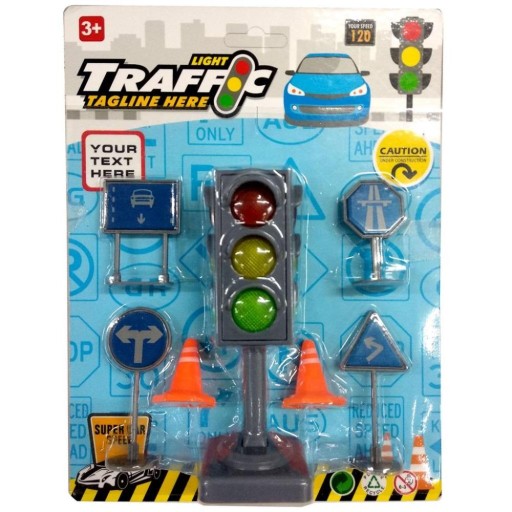 W zestawie sygnalizator i znaki drogowe. Sygnalizator na baterie - świeci, zmienia kolory świateł.