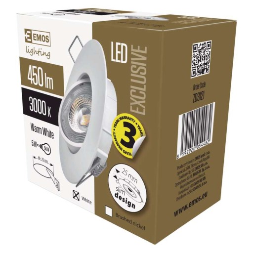 Эксклюзивный светодиодный светильник 5 Вт теплый белый, EMOS белый