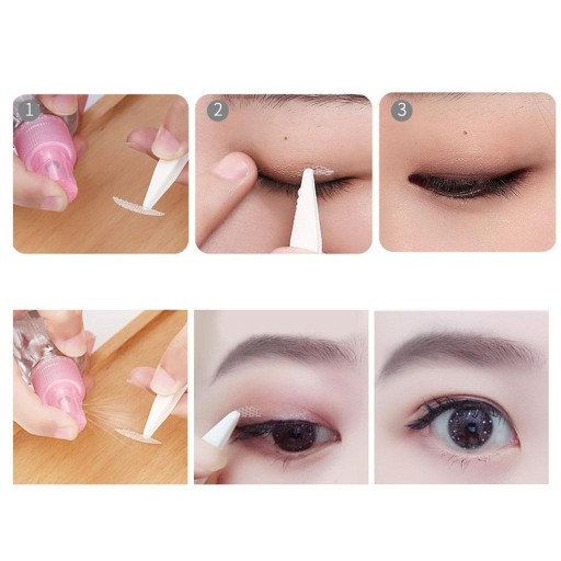 2. Umieść podwójne sztyfty do powiek w odpowiedniej pozycji, czekając, aż wilgoć wyschnie w połowie. Jeśli jest nadmiar wody, można użyć wacika do wytarcia.