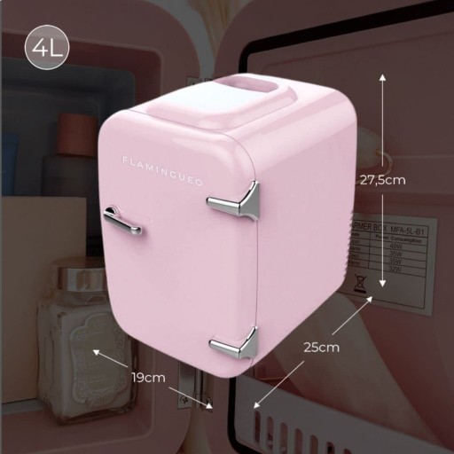 Mała lodówka ma pojemność do 4 l, co pozwala na przechowywanie małych kosmetyków, żywności i napojów.