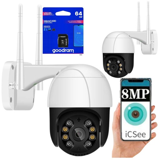 Kamera obrotowa o rozdzielczości 8 MegaPixeli ( obraz 3840 x 2160 4K UHD - Ultra HD) to kamera charakteryzująca się bardzo szczegółowym obrazem. Podłączysz ją zarówno pod domowe WiFi jak i kablem LAN. Dzięki rozbudowanej aplikacji ICSEE będziesz miał do niej dostęp ze swojego smartfona z dowolnego miejsca na świecie. Nie wymaga rejestratora - posiada wbudowany slot na kartę pamięci.
