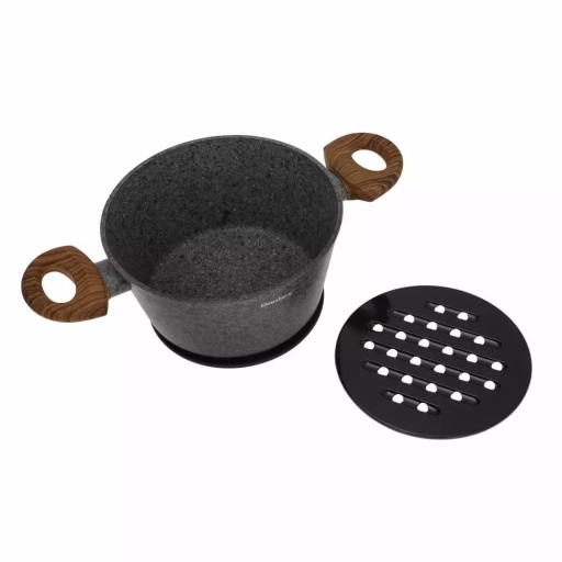 - Garnki wykonane zostały z wysokiej jakości aluminium z powłoką nieprzywieralną marmurkową non-stick