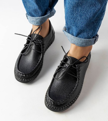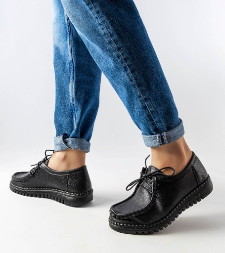 Czarne sznurowane mokasyny Tuva to innowacyjny wybór dla każdej kobiety, która ceni sobie komfort i styl. Wykonane z tworzywa sztucznego oraz eko-skóry, są nie tylko modne, ale też przyjazne dla środowiska. Ich okrągły nosek i zapinanie na rzepy dodają im elegancji i klasyki. Jednocześnie krój mokasynów Tuva jest rewolucyjny - połączenie tradycyjnego stylu z nowoczesnymi technologiami sprawia, że są one wyjątkowo wygodne i trwałe. Te damskie mokasyny to doskonały wybór dla kobiet, które chcą poczuć się pewnie i modnie zarówno w pracy, jak i podczas weekendowych spacerów.