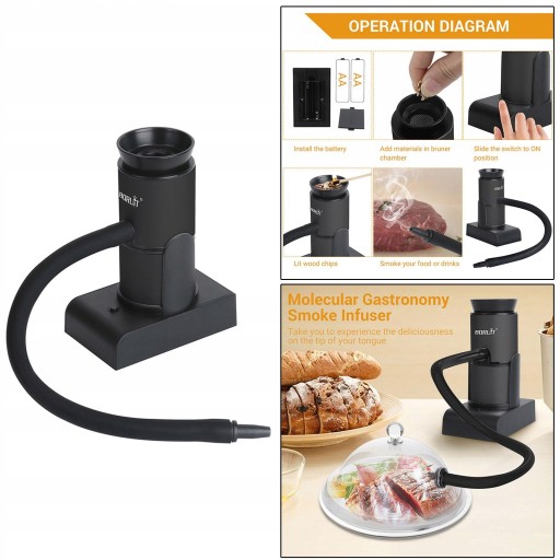 Palenie pokarmowe w ciągu kilku minut - przenośny pałkarz daje dymny smak i aromat do jedzenia lub napojów w krótkim czasie Ładny gadżet do palenia dla szefa kuchni lub barmana