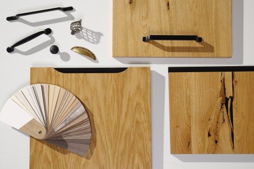 - Kolorystyka - podstawowy kolor frontów to naturalny lakier bezbarwny pół-mat