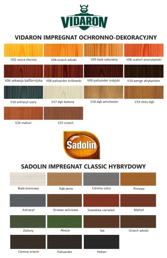 Oferujemy dwukrotną impregnację w dowolnie wybranym kolorze z palety barw firmy Vidaron oraz Sadolin