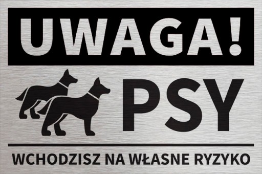 Tabliczka UWAGA PSY WCHODZISZ NA WŁASNE RYZYKO 15x10 cm