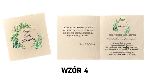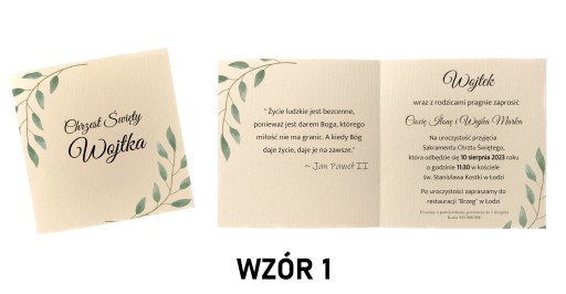 - Wybranego wzoru (w przypadku nie podania wzoru zaproszenie zostanie wykonane takie jak na pierwszym zdjęciu aukcji).