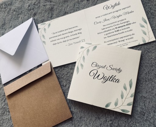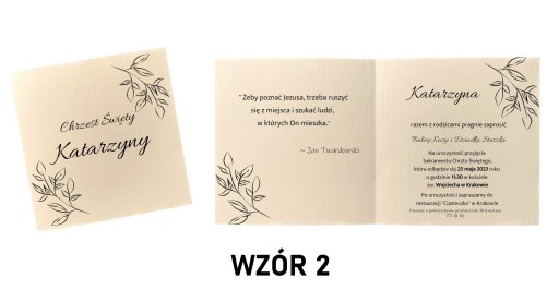 Przedmiotem sprzedaży są zaproszenia na Sakrament Przyjęcia Chrztu Świętego z personalizacją już od 1 sztuki!