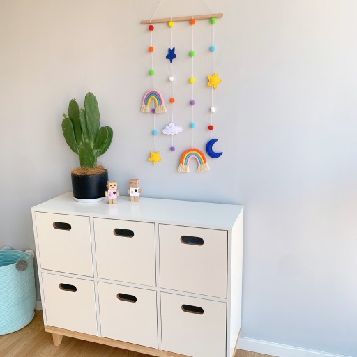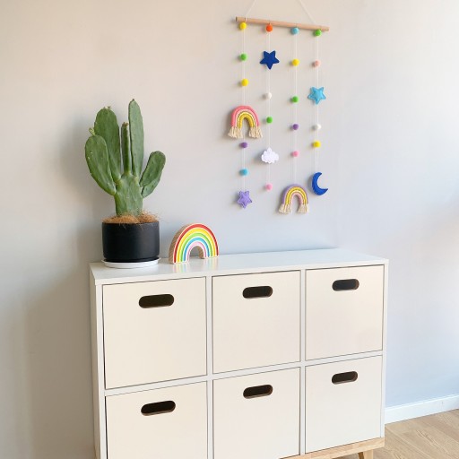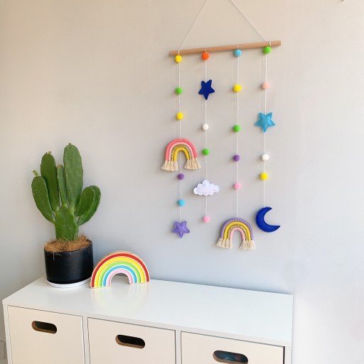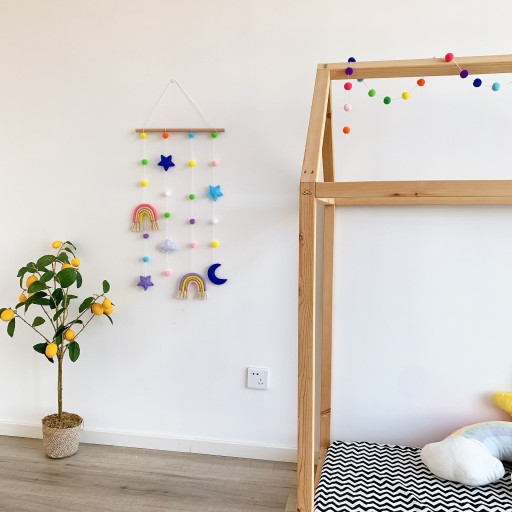 - ✅ PRZYJEMNA ATMOSFERA - wieszak doskonale wpasowuje się w aranżację pokoju dziecka, dodając mu przytulności i ciepła. Filcowe kuleczki i barwne tęcze ożywią każde miejsce, nadając mu wyjątkowego charakteru.