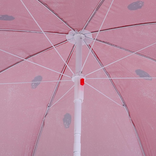 Stelaż parasola jest niebywale stabilny- zapewni to stałą ochronę przed słońcem, jak i deszczem nawet podczas wiatru! A materiał poszycia, poza tym, że jest w uroczy arbuzowy wzór, jest również niezwykle wytrzymały. Co więcej, w przypadku zabrudzeń możesz go łatwo wyczyścić.