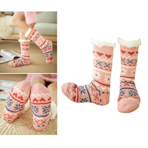 Damskie skarpety zimowe termiczne ciepłe miękkie przytulne puszyste skarpetki różowe