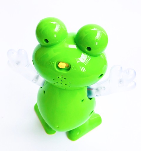 Żabka po włączeniu zaczyna falować rękami i poruszać bioderkami, co również może uczynić Państwa dziecko zachęcone tańcem zabawki.