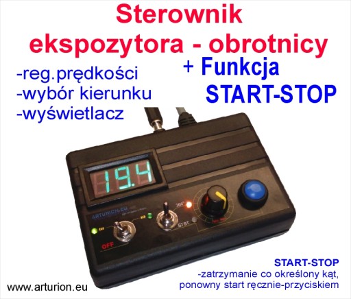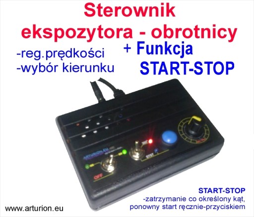 Funkcja Start-Stop-wersja z możliwością automatycznego zatrzymywania np 36 x na obrót czyli co 10 stopni i dalszy ruch po naciśnięciu przycisku lub automatycznie po określonym czasie