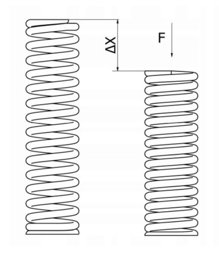 Siłę "F" [kg] potrzebną do przyłożenia do sprężyny aby skrócić ją o długość "Δx" [cm] obliczamy ze wzoru:
