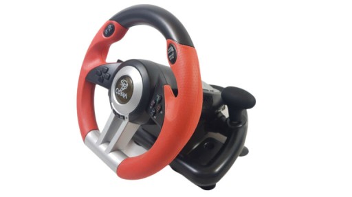 Dwa wbudowane silniki wibracyjne oraz kąt obrotu w zakresie 180 stopni zwiększają realizm użytkowania. Stabilny montaż do blatu zapewni 6 przyssawek. Pod kierownicą znajdują się dodatkowo manetki do zmiany biegów. Obręcz kierownicy została pokryta miłym w dotyku materiałem co znacznie zwiększa wygodę jej użytkowania.