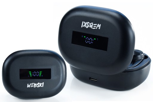 🔋 Widoczny ekran LCD pokazuje stan ładowania słuchawek oraz procent naładowania całego powerbanka. Po rozładowaniu słuchawek wystarczy włożyć je do kanałów pudełka i automatycznie zaczną się ładować.