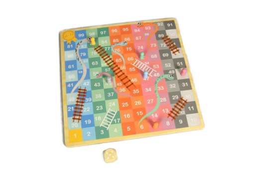 - 6 zwykłych pionków i kostkę do gry "Węże i drabiny"