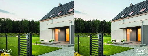 Obejmuje większy obszar i zapewnia więcej szczegółów! Kamera zewnętrzna 4 Mpx umożliwia oglądanie filmów i zdjęć w wyższej rozdzielczości niż 1080p. Doskonale sprawdzi się na podwórku i w hallu.