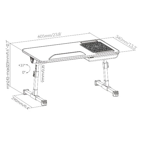 Z uwagi na fakt, że stolik regulowany SPR-Beddy M został zaprojektowany z myślą o tym, żebyś mógł go wykorzystywać jako podstawkę pod laptopa, jest on wyposażony w podkładkę pod myszkę, żebyś mógł korzystać z pełni możliwości swojego komputera bez obawy o porysowanie stolika. Co więcej, wyciągana szuflada zapewni Ci przestrzeń, chociażby dla Twojego telefonu, a nowe zatrzaskowe przyciski pozwalają na szybszą regulację pochyłu i wysokości, niż korbki, często stosowane w tego rodzaju produktach. Dodatkowo warto wspomnieć, że po złożeniu stolik regulowany na łóżko SPR-Beddy M zajmuje na tyle niewiele miejsca, że możesz go schować bez problemu np. pod łóżkiem.