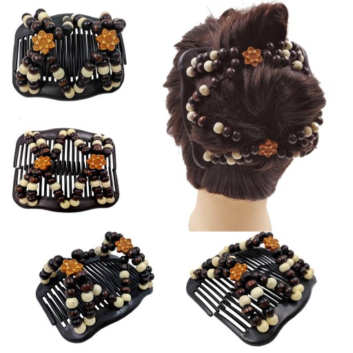 Drewniany grzebień Koraliki Clip Elastyczny klips do włosów dla kobiet Ladies