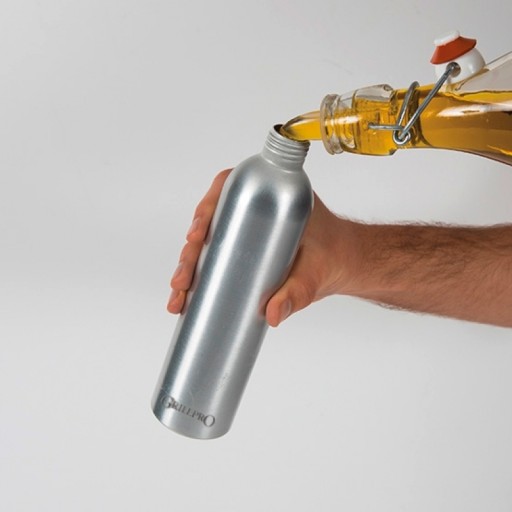 Aluminiowy zbiornik o pojemności 350 ml wyposażony w wydajny spryskiwacz wyrzuca mgiełkę, która doskonale pokrywa powierzchnię rusztów. Nadaje się również do nawilżania wszystkich grillowanych potraw.