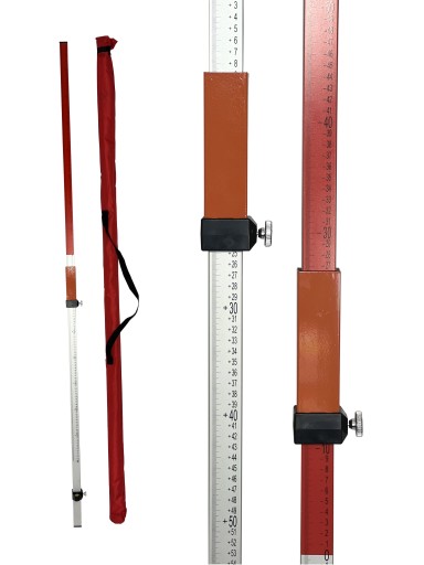 Bardzo mocna łata teleskopowa o długości 3.5m. Spełniająca wymagania dokładnościowe oraz jakościowe. Posiada pomarańczowy element ruchomy umożliwiający regulację wysokości detektora do obsługi niwelatora laserowego.