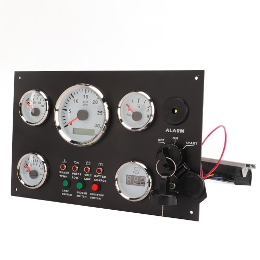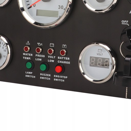 5. Wielofunkcyjny: Zaprojektowany ze wskaźnikiem rozpoczęcia zapłonu, wyłącznikiem światła, wyłącznikiem stopu silnika, przełącznikiem BUZZER, alarmem temperatury wody, alarmem niskiego ciśnienia oleju, alarmem niskiego napięcia, alarmem ładowania baterii i wszystkie wyposażone w czerwone podświetlenie.