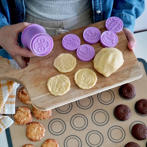 Stemple do ciastek z wykrawaczem Tadar wykonano z trwałego tworzywa sztucznego. Bez obaw możesz używać ich w kontakcie z żywnością. Użyjesz produktu do wykrawania idealnie okrągłych pierniczków i ciasteczek. Każde ciastko lub piernik ozdobisz jednocześnie jednym z 6 wzorów. Do przechowywania zestawu wymiennych pieczątek wykorzystasz konstrukcję stempla. Jego kształt jest ergonomiczny, co daje komfort dekorowania i wykrawania. Łatwo rozłożysz wykrawacz na części i sprawnie go umyjesz po użyciu. Możesz nawet bezpiecznie wykrawać ciasto bez ozdabiania go.