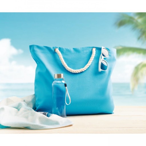 Torba plażowa lub torba na zakupy z bawełny z uchwytem ze sznurka. 220 gr/m²