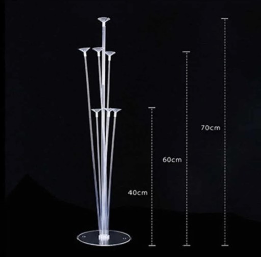 Stojak wykonany z przeźroczystego plastiku, co sprawia, że prezentuje się bardzo dyskretnie, dodatkowo stojak ma funkcje łącznie różnych długości patyków, dlatego to Ty decydujesz, który balon ma się znajdować na jakiej wysokości. Do samodzielnego złożenia.