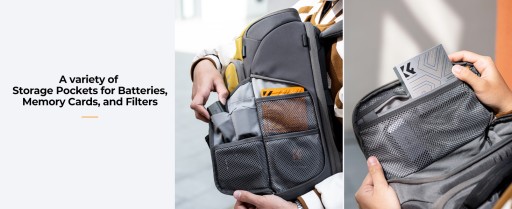 W środku plecaka znajdują się specjalnie wydzielone kieszonki, które pozwolą Ci na przechowywanie małych rzeczy np. kart pamięci lub baterii.