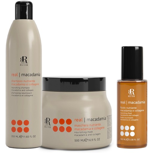 Macadamia Star – to seria kosmetyków, których głównym składnikiem aktywnym jest olejek makadamia. Doskonale wchłania się on we włosy, intensywnie je odżywiając. Jest bogatym źródłem witamin E, A i z grupy B, nienasyconych kwasów tłuszczowych, wapnia, magnezu, cynku, skwalenu i fenoli. Działa regenerująco, wzmacnia pasma, nadaje im połysk, nawilża, zapobiegając nadmiernej utracie wody, pielęgnuje skórę głowy, regulując wydzielanie sebum. Co znajdziesz w tej linii RR Line? Maski, szampony oraz fluid – czyli wszystko, co potrzebne do podstawowej pielęgnacji.