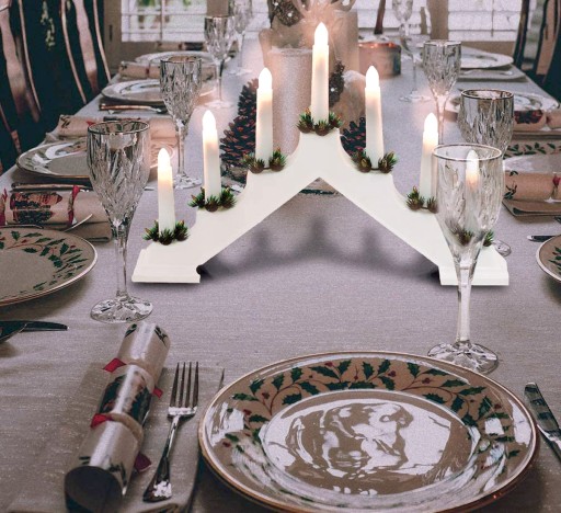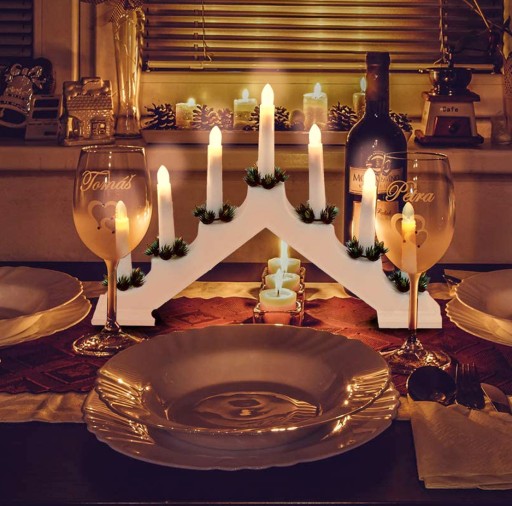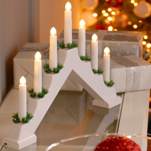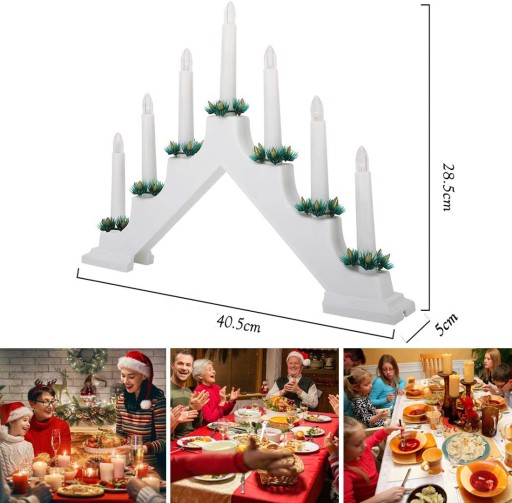 ŚWIECZNIK ADWENTOWY LED DREWNIANY BIAŁY 7 ŚWIEC LAMPKA BATERYJNA