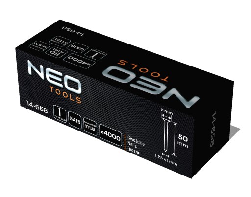 Gwoździe galwanizowane do zszywacza pneumatycznego (14-570), GA18, Typ 300 (F), długość 50 mm, 4000 sztuk 14-658 marki NEO to gwoździe stalowe, galwanizowane, a tym samym odporne na korozję. Przeznaczone są do zszywacza pneumatycznego 14-570 NEO. Charakteryzują się długością 50 mm, typem 300 (F), GA18. Oferowane są w zestawie po 4000 sztuk. Gwoździe polecane do wszelkiego rodzaju prac ze zszywaczami pneumatycznymi. Będą odpowiednie do profesjonalnych zastosowań.