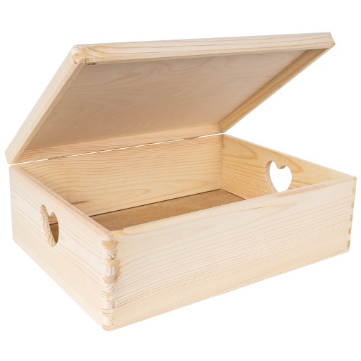 Pudełko drewniane skrzynka z uchwytami w serca z drewna prezent 40x30x14 cm