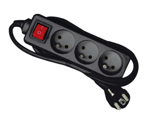 Klasyczny przedłużacz listwowy z 3 gniazdami z uziemieniem oraz włącznikiem do użytku domowego. Długość 1,5m. Obudowa gniazd z tworzywa sztucznego. Kolor czarny.