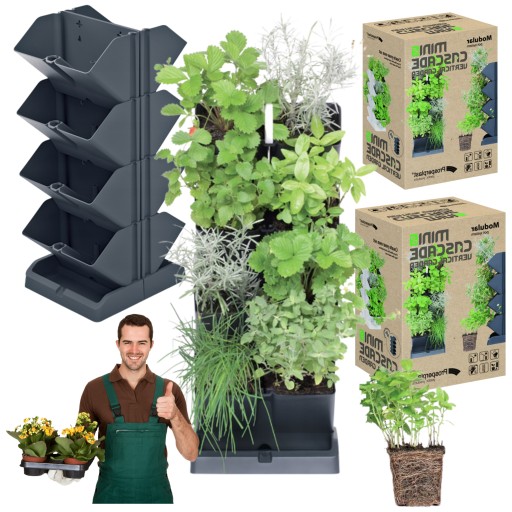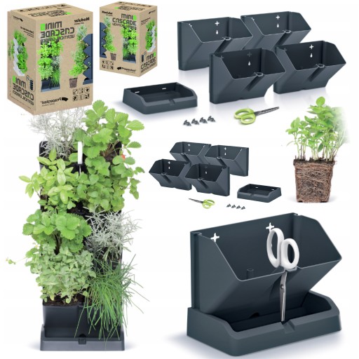 zestaw składa się z 2x czterech doniczek, z każdą z nich zaprojektowaną tak, aby mogły pomieścić dwie rośliny w małych doniczkach. Masz możliwość wybrania aż 8 ulubionych ziół lub kwiatów i stworzenia swojego własnego ogrodu wertykalnego.