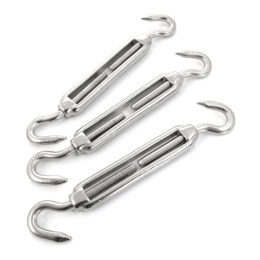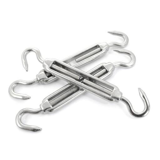 Śruba jest zakończona z obu stron hakami, które można zaczepiać o inny osprzęt np. szekle, karabińczyki, ogniwa czy też w śruby lub nakrętki z uchem.