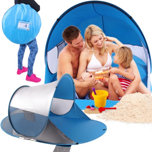 - ✅Namiot plażowy z filtrem UV 50✔️Pokrowiec z uchwytem zamykany na zamek błyskawiczny, ✔️5 szpilek, ✔️2 linki✔️instrukcja składania
