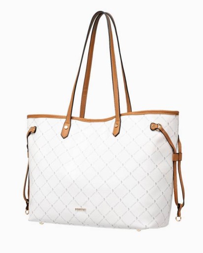 Prezentowana torebka to elegancka, klasyczna shopperka PUCCINI, stanowiąca idealne dopełnienie niebanalnych stylizacji. Dedykowana kobietom ceniącym wygodę i swobodę. Całość uszyta jest z lekko groszkowanej skóry ekologicznej, a cechą wyróżniającą torebkę jest oryginalny monogram Puccini. Środek obszyty jest bardzo przyjemnym materiałem sygnowanym logiem marki. Wewnątrz znajdziemy jedną kieszeń zapinaną na suwak oraz dwie otwarte kieszonki np. na telefon oraz jedną zamykaną na suwak. Dodatkowym atutem jest dopinana kosmetyczka o wymiarach 20 x 14 cm. Usztywniony spód chronią stopki w złotym kolorze.