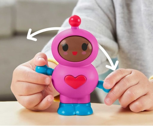 Dodatkowo mali odkrywcy dobrze sobie radzą, gdy siadają i poprawiają swoje przyjaciela, pomagając wzmocnić motorykę