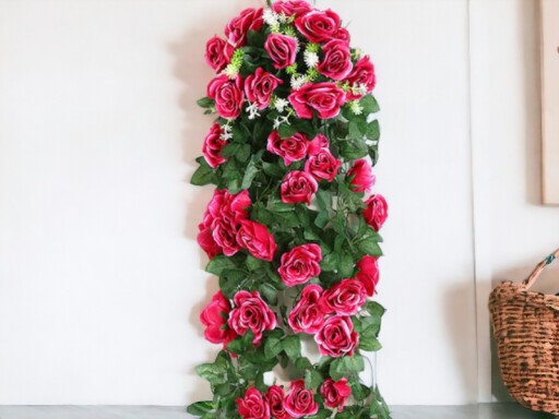 Sztuczna Róża z 19- 18 kwiatostanami płożąca o długości ok 90 cm.