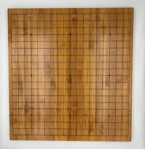 - nieskładana plansza z wygrawerowanymi liniami do gry w go, a na odwrocie plansza do gry w xiangqi (szachy chińskie),