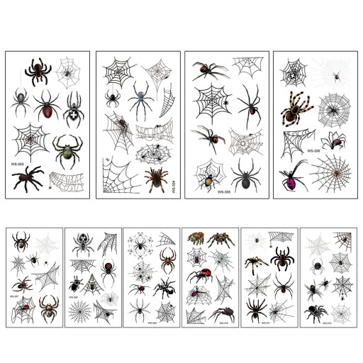 Nowatorski projekt: Te tymczasowe naklejki z tatuażami zostały zaprojektowane z motywami pająków, w tym pajęczymi, wiele różnych wzorów pajęczych sieci i tak dalej.