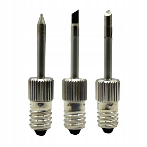 Pakiet zawiera: 3 sztuki grotów lutowniczych w różnych kształtach Ten specjalny, dostosowany zestaw końcówek może osiągnąć prawie każdą potrzebną aplikację lutowania Wysoka jakość, każdy z nich to zaawansowany proces produkcyjny