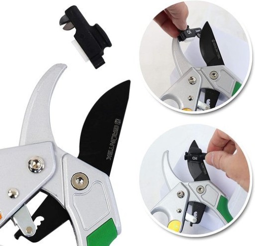 Specjalny mechanizm zapadkowy pozwalający na lekkie cięcie w trzech krokach.