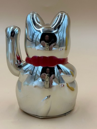 Japoński Kot Maneki-Neko Chiński Kot Szczęścia SREBRNY 0255D 13cm