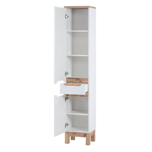 Bali to kolekcja, która imponuje wzornictwem - połączenie solidnych korpusów z delikatną bielą frontów oraz drewnianymi detalami sprawia, że meble stają się centralnym elementem wystroju łazienki. W kolekcji znajduje się wiele szafek o różnych rozmiarach i zastosowaniu, dzięki czemu każdemu uda się skomponować łazienkę dostosowaną do indywidualnych potrzeb i wizji. Ciekawym aspektem serii są dwie szafki wiszące posiadające piękne lustra, które jednocześnie stanowią fronty szafek. Ponadto, w kolekcji znajdziemy dwie szafki pod umywalkę, do których możemy dobrać jedną z czterech umywalek. Wszystkie fronty mebli z kolekcji Bali posiadają frezowane uchwyty, które są wyjątkowo praktyczne i wpisują się w aktualne trendy wnętrzarskie