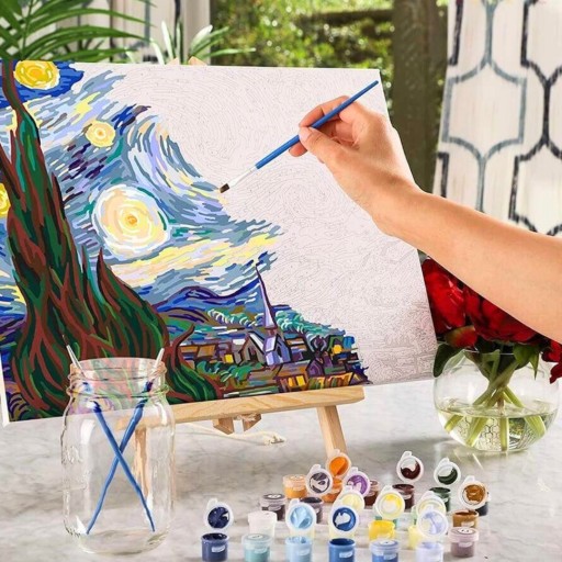 Na płótnie rozciągniętym na ramie znajdziesz wzór z polami oznaczonymi numerami. Każdy numer odpowiada kolorowi w zestawie farb akrylowych. Wystarczy dopasować numer na płótnie do numeru na farbie i wypełnić pole wybranym kolorem. Możesz również eksperymentować z różnymi technikami malarskimi, aby uzyskać unikalne efekty.